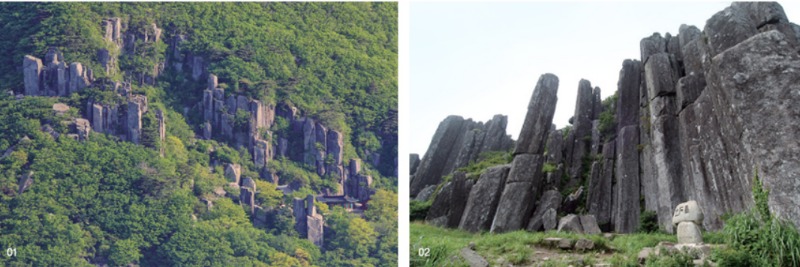 01.명승 무등산 규봉 주상절리와 지공너덜 Ⓒ국가유산포털 02.천연기념물 무등산 주상절리대 Ⓒ국가유산포털