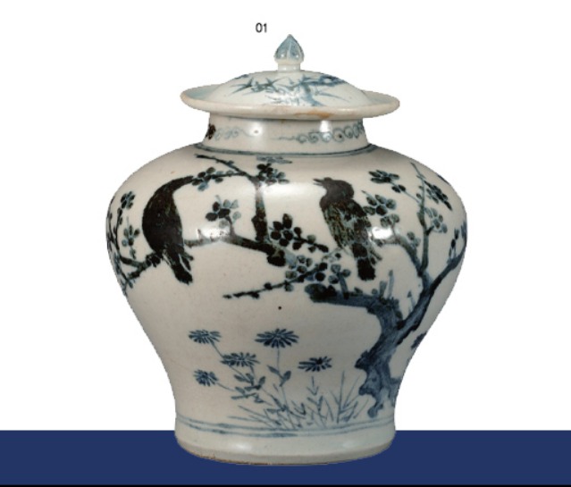 01.) 〈백자청화매조죽문호〉, 15~16세기 Ⓒ국립중앙박물관