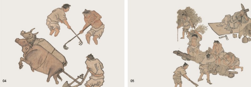 농업은 천하의 사람들이 살아가는 큰 근본이었다. 김홍도의 풍속화 속에는 거친 땅을 일구는 농부의 활기찬 몸짓과 소의 힘찬 걸음이 생생하게 살아 있다. 뙤약볕 아래 허리를 굽히고 땀 흘리는 농부에게 일은 정직한 수확의 기쁨을 주는 근원이자 때로는 자연의 변덕 앞에 무력해지는 슬픔의 현장이기도 했다. 흙을 믿고 씨를 뿌리는 그 숭고한 반복이 조선의 곳간을 채웠다.