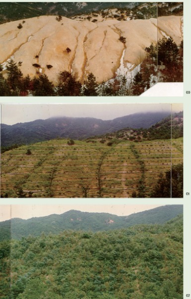 00. 사방사업 시행 전(상) 01.1년 후(중) 02.3년 후(하)의 복구된 모습(1964년 충남 대덕 산내)