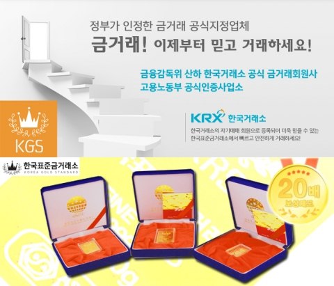 한국표준금거래소(http://goldgold.co.kr)는 고용노동부 정식인증업체로, 금융감독위 산하 한국거래소의 자기매매 회원으로 등록되어 있는 거래소다.