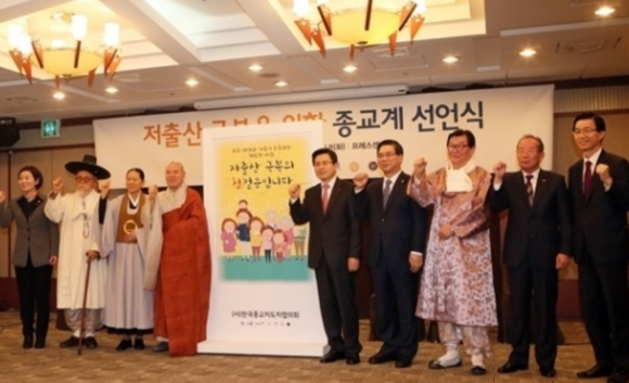 3시 10분 한국프레스센터(서울 종로구 세종대로 소재)에서 열린 한국종교지도자협의회* 7대 종단대표의 ‘저출산 극복을 위한 종교계 실천 선언문’
