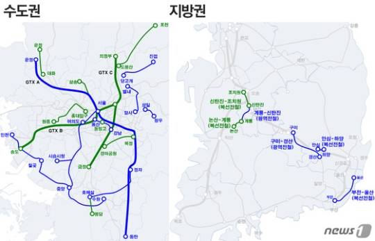 대량의 통행수요가 발생하는 수도권 대단위 택지개발지역에 광역철도망 공급과 충청권·대구권 등 지역 광역통행을 위한 철도망도 확대한다.