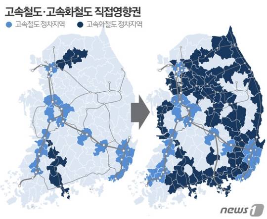 국토부 관계자는 “제3차 국가철도망 구축계획에 따라 고속철도 서비스를 제공받는 비율이 60%으로 확대될 것"이라면서 "시간당 200㎞ 이상의 고속화 철도까지 포함하면 전체 인구의 85%가 고속화된 철도의 수혜를 받게 돼 국민들의 교통복지 수준이 크게 향상된다"고 말했다.
