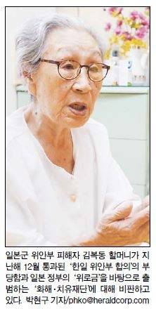 [헤럴드경제]“일본 정부가 내는 돈이 ‘배상금’이 아니라 ‘위로금’이라는데, 그 돈 몇푼 때문에 위안부 할머니들이 수십년 싸운게 아닙니다. (일본 정부와) 그런 식으로 합의해서 수십년 동안 할머니들이 쌓은 성과를 저지래 (잘못하는 행동의 경상도 사투리)하려면 우리 정부가 아에 손떼고 차라리 모르는체 하는게 낫습니다. 죽는 한이 있어도 우리 할머니들은 일본으로부터 정부차원의 제대로된 사죄와 역사 인정, 법적 배상을 받기 전엔 이 싸움을 절대 끝낼 수 없습니다.”