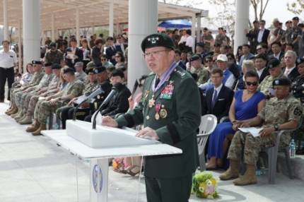 전역사를 하고 있는 전인범 장군 - 기존의 관행과 부딪치면서도 참군인의 상을 제시해 ‘괴짜 장군’, ‘영원한 특전사령관’ 등의 애칭으로 통했다.