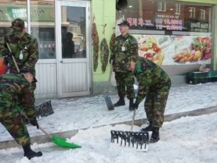 제설작업 하고, 전역사병에게 경례’ ’괴짜장군’의 퇴임식