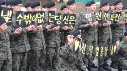 전인범 장군의 특전사령관 이임을 아쉬워하는 특전대원들.(사진=특전사 전역자 제공)