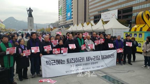박근혜 대통령과 새누리당에 국정농단 사태의 책임을 물은 종교인들은 박 대통령의 퇴진과 새누리당의 해체를 촉구했다. 이어 “오늘 이후 종교인들도 모든 방법을 통해 결연한 행동에 나설 것이다. 국민들과 강력한 공동행동을 함께 하겠다”고 선언했다.