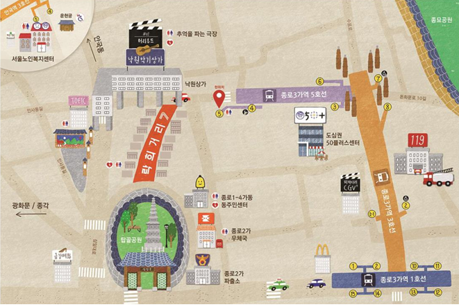 탑골공원 일대는 접근성이 뛰어나고 탑골공원, 실버영화관, 50+센터, 저가 식당 등 이용시설이 풍부해 어르신들이 주로 이용하는 공간임에도 불구하고 안전하지 못한 보행공간, 노후되고 지저분한 거리환경, 세대 간 소통부재로 인한 고립과 자존감 상실 등 어르신들의 신체적‧정서적 특성이 배려되지 않아 개선이 필요한 공간으로 인식되어 왔다.