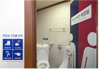 둘째, ‘어르신 우선 화장실’은 ‘상냥한 가게’ 중 어르신들이 많이 이용하는 이발관에 마련됐다. 화장실 안에서 눈치 보지 않고 실금‧실변 등을 처리할 수 있도록 변기와 세면대가 하나로 된 ‘변기일체형 세면대’를 설치했다. ㄹ자 안전 손잡이와 지팡이 거치대, 미끄럼 방지 타일을 적용해 낙상을 방지했고, 소지품 분실 방지를 위한 ‘도어 락 선반’도 달았다.