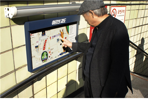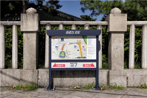셋째, ‘어르신 이정표’는 시력과 인지능력이 떨어진 어르신들도 쉽게 알아볼 수 있도록 큰 글자와 대비‧명도‧채도 차를 이용해 자주 찾는 시설 및 장소를 강조하는 형태로 제작했다. 또, 시야가 낮은 것을 고려해 설치도 눈높이에 맞게 낮췄다. 타인의 도움 없이 이정표만으로도 스스로 목적지를 찾아갈 수 있게 해 자존감을 높일 수 있게 했다.