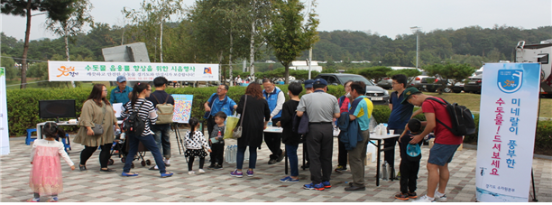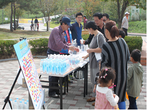 시·군 지역축제와 연계해 진행된 이번 시음행사는 이름표를 가린 3개 컵 가운데 가장 맛있는 물을 선택하는 방식으로 진행됐다. 3개 컵에는 각각 수돗물과 시중에서 판매 중인 생수, 공공기관에 설치된 정수기에서 받은 물이 담겨 있었다.